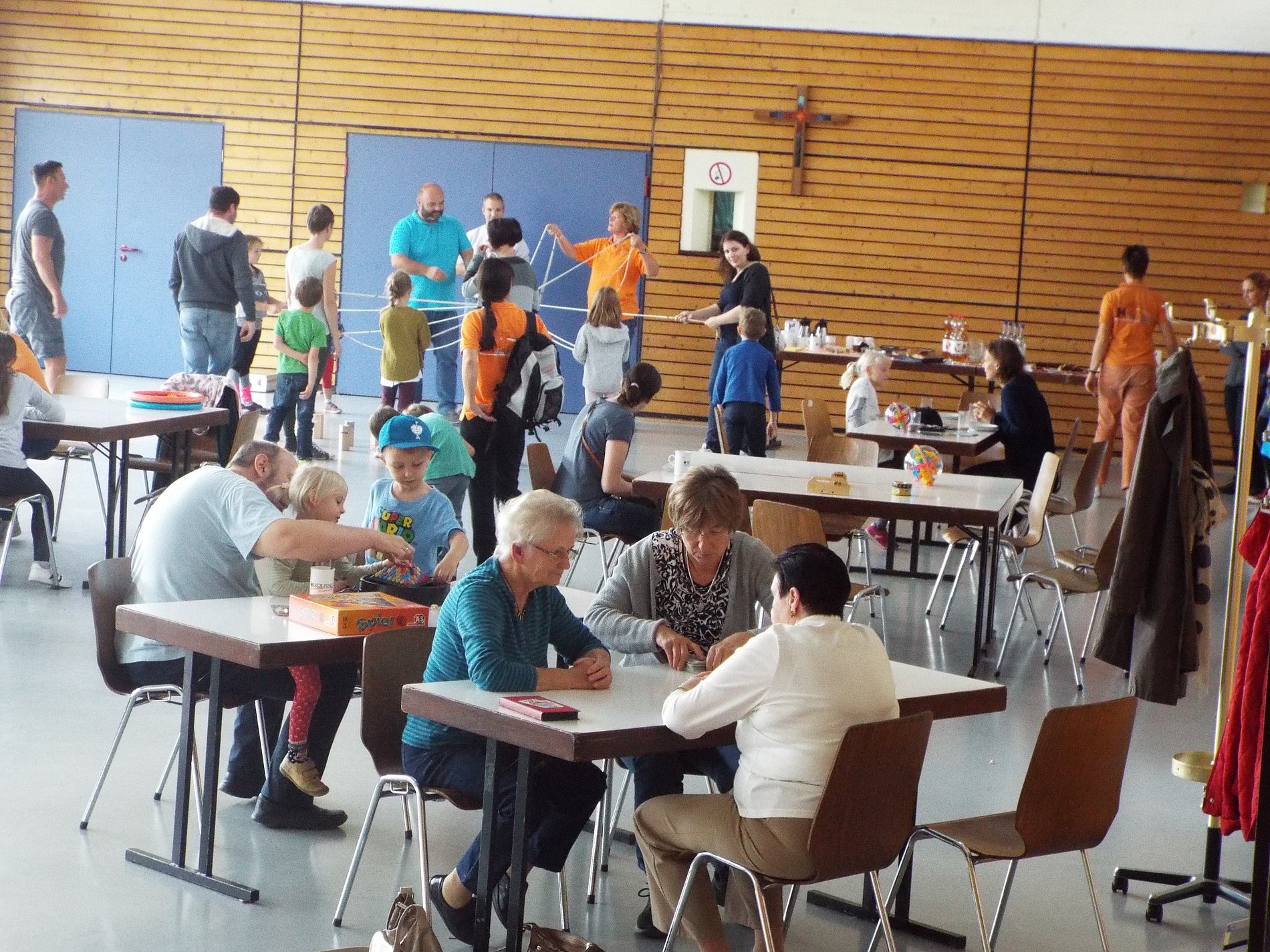 Trotz herrlichem Herbstwetter und Ferien haben sich heute viele Familien im Gemeindezentrum zum Spielen getroffen. In Zusammenarbeit mit dem Spielpunkt aus Kriftel konnten neue Gesellschafts- und Bewegungsspiele ausprobiert werden. Für jedes Alter waren unterschiedliche Spiele aufgebaut, die von zwei Mitarbeitern des Spielpunkt, Kriftel erklärt wurden. Für das leibliche Wohl wurde ebenfalls gesorgt durch selbstgebackenen Kuchen und diversen Getränken, wie Kaffee, Kakao, Wasser oder Apfelsaftschorle.