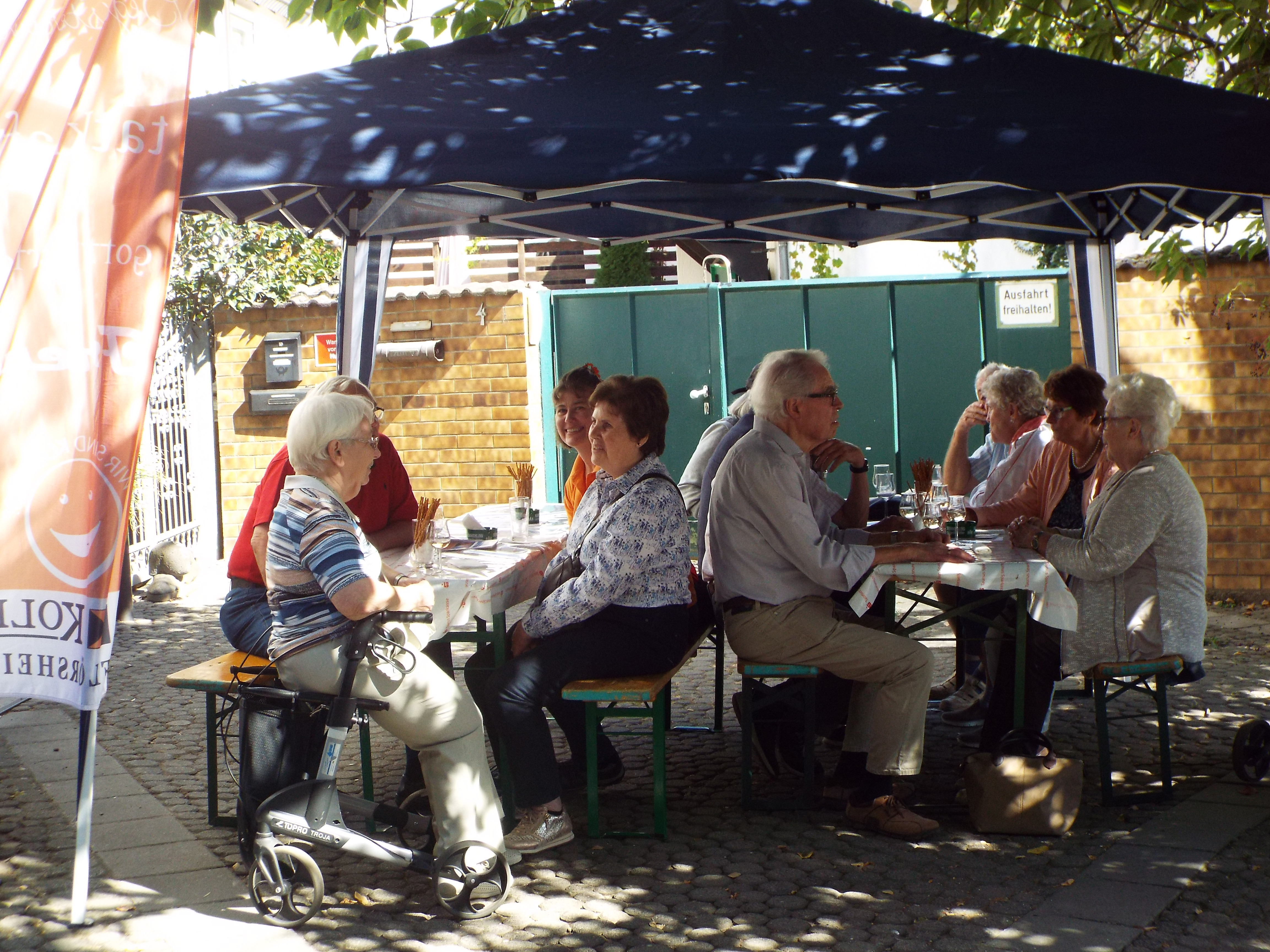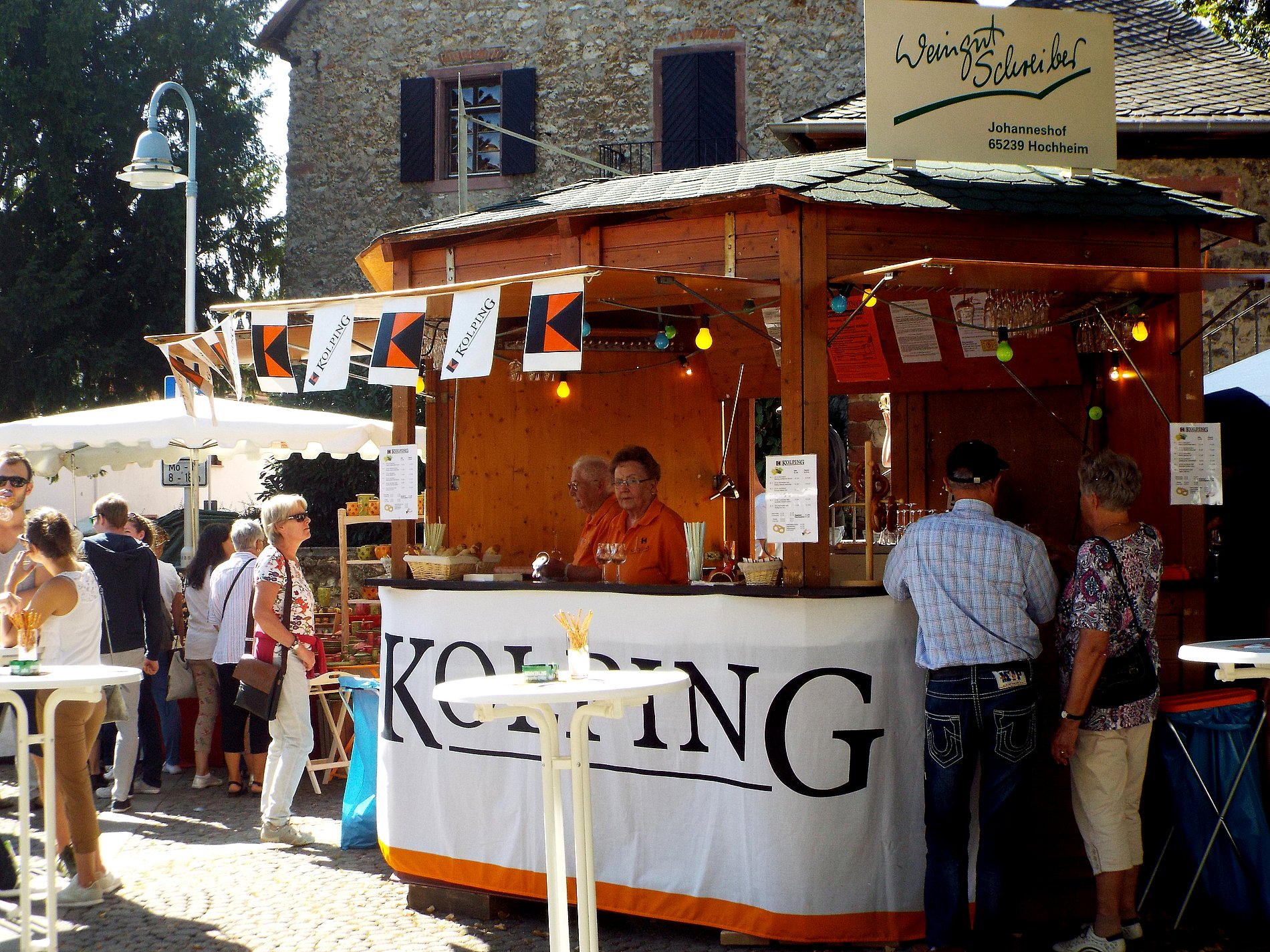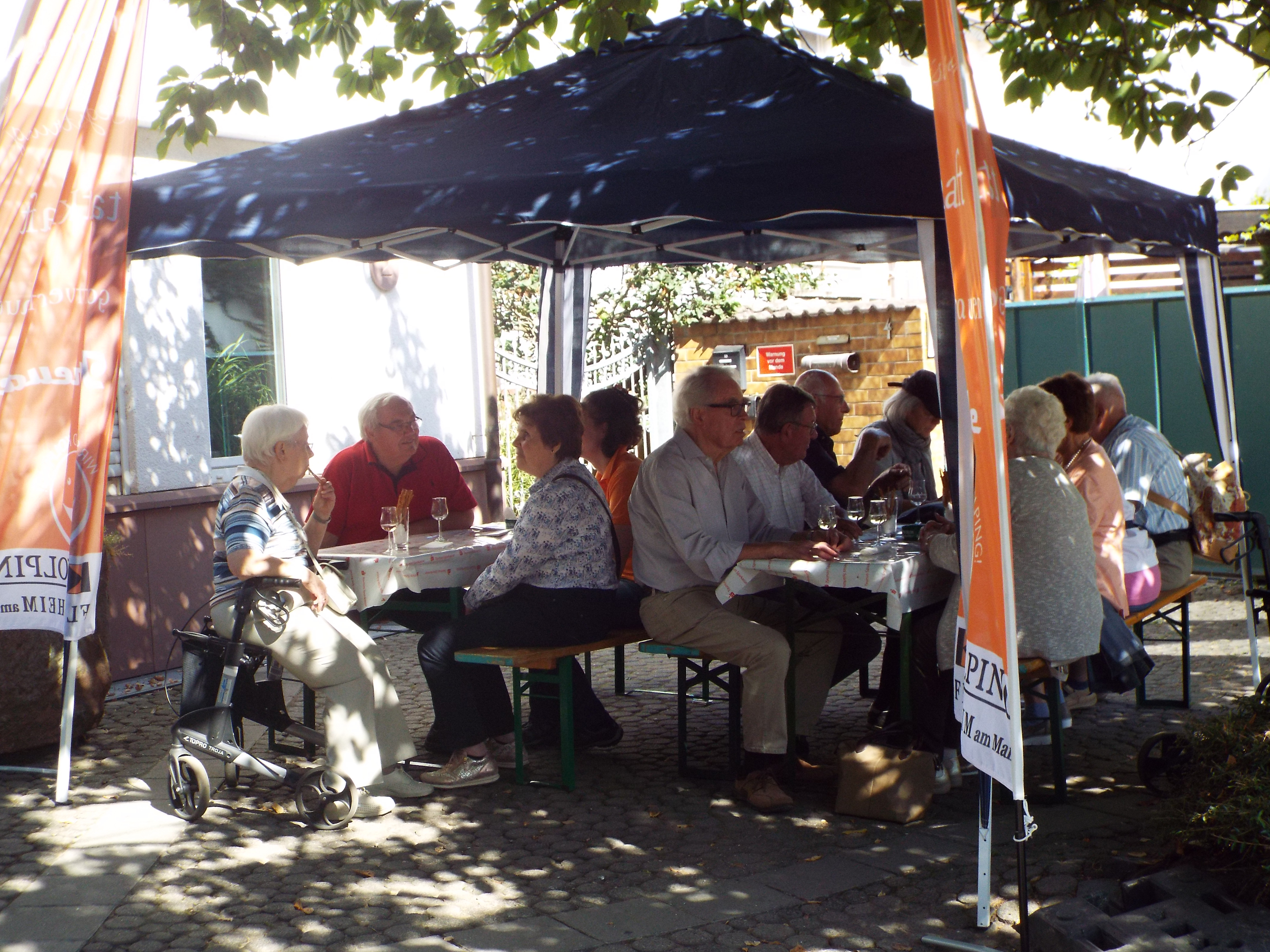 Wie in jedem Jahr, waren wir auch dieses Mal wieder mit einem Weinstand auf dem Töpfermarkt vertreten. Neben leckeren Kolpingweinen und Sekt, haben wir unseren Gästen auch frischen Federweißer angeboten. Wer Hunger hatte, konnte leckere Fleischkäsebrötchen, frisch gebackene Käse-Schinken-Stangen oder Laugenbrezel genießen. Viele Gäste verweilten, während ihres Bummels über den Töpfermarkt, an unseren Stehtischen oder auf den überdachten Sitzplätzen um bei herrlichem Sonnenschein ein Gläschen Wein oder Federweißer zu genießen.