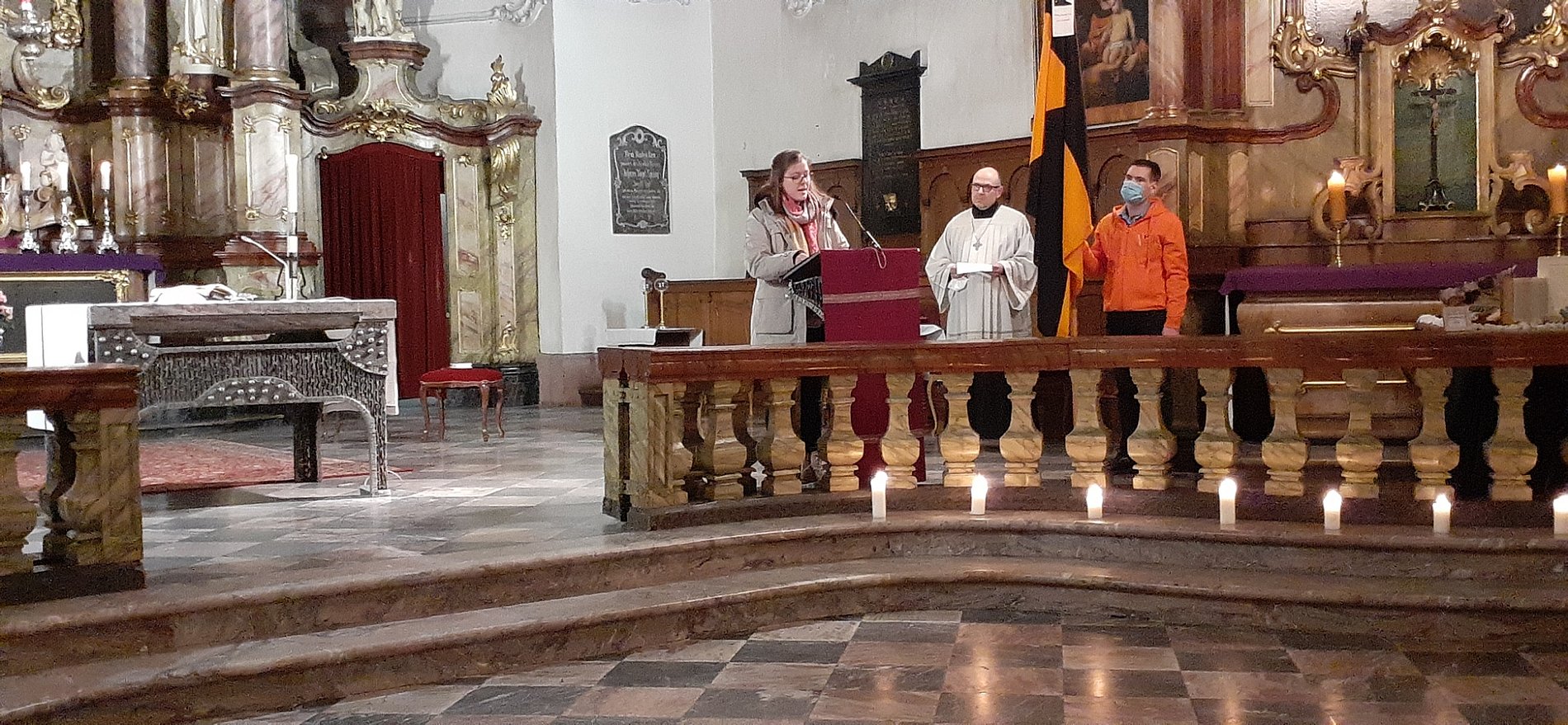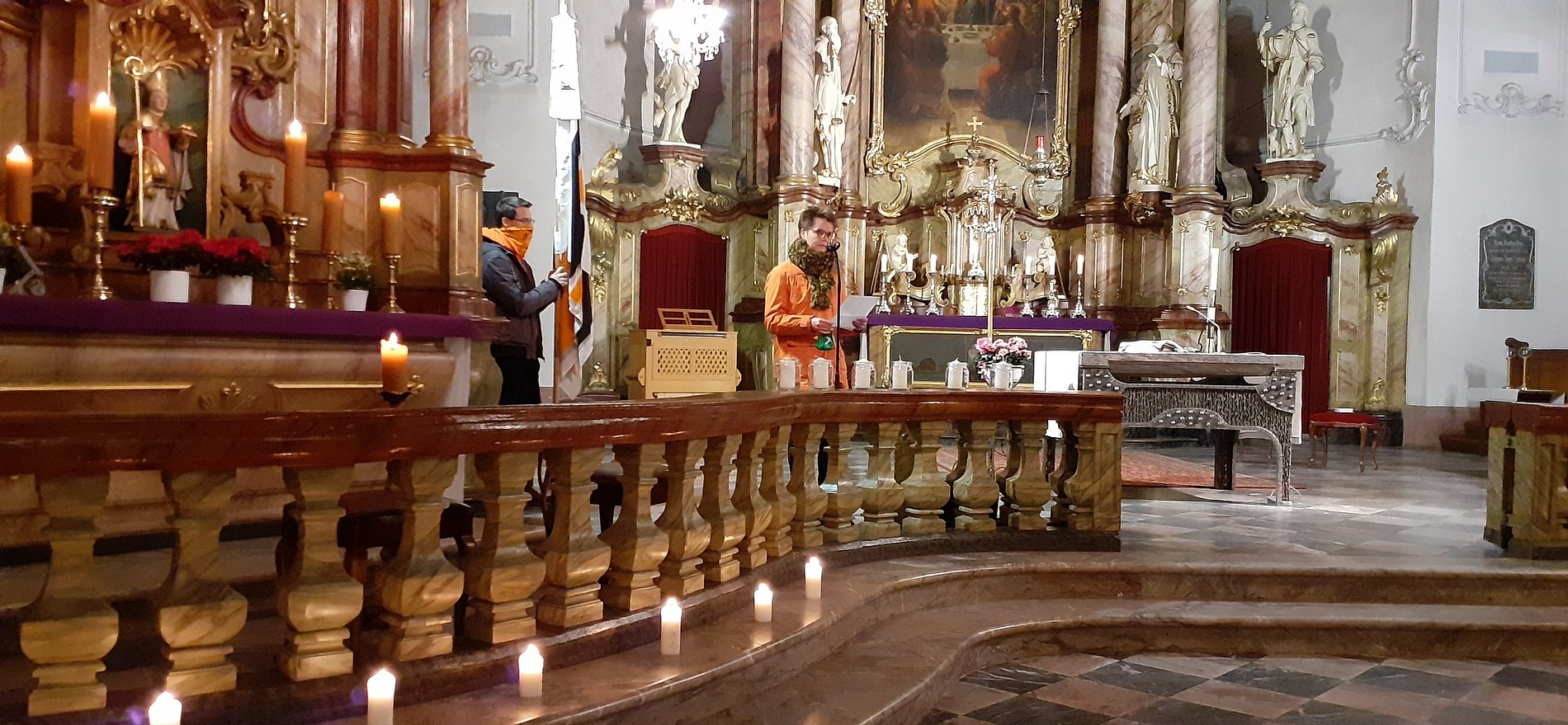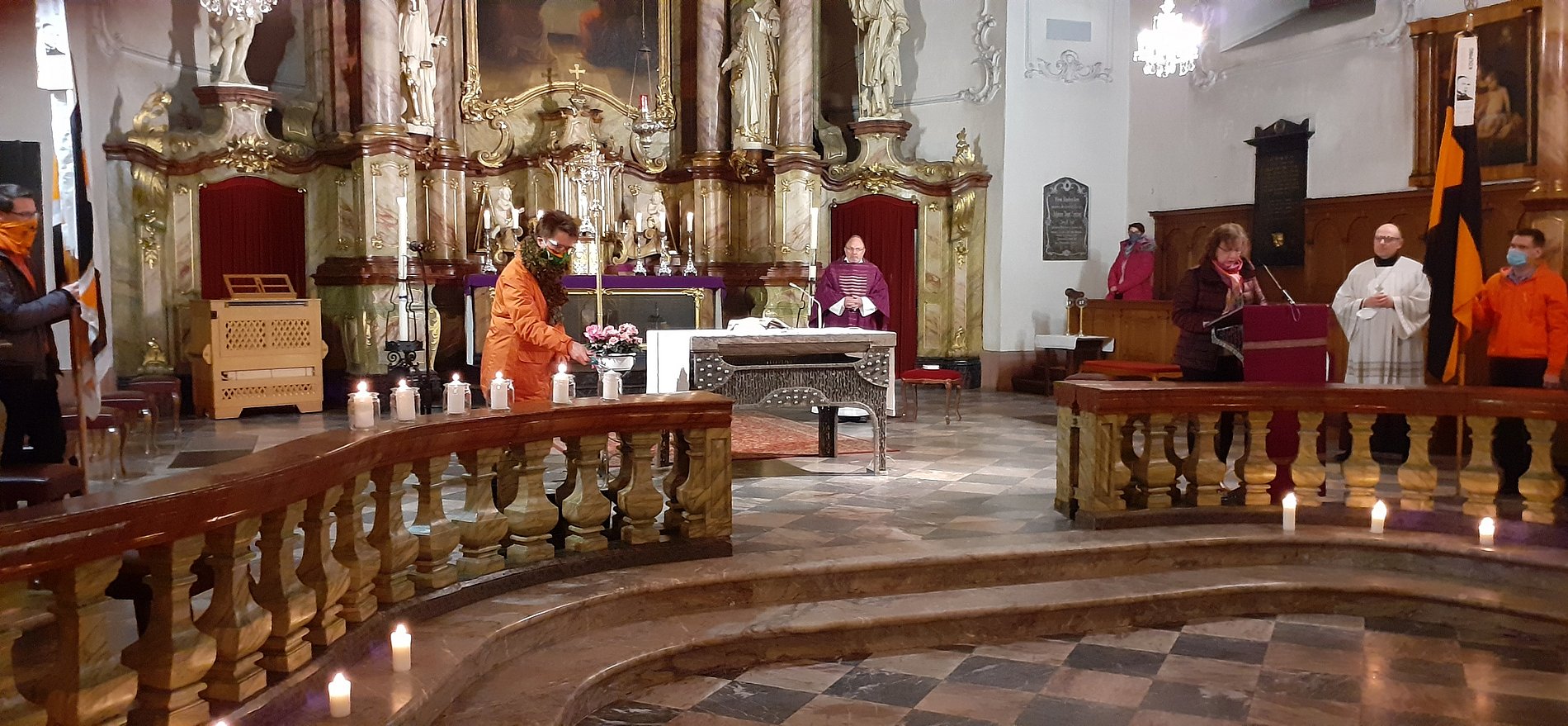 Da dem Vorbereitungskreis jedoch das Erleben der Gemeinschaft ganz besonders in diesem Jahr und mit der letzten Veranstaltung der Kolpingfamilie für 2020 am Herzen lag, wurde ein besonderes gestalteter Gottesdienst vorbereitet. Er stand unter dem Motto: "Steht auf und gebt der Welt ein Lebenszeichen in jedem von euch brennt dasselbe Licht. Noch ist es dunkel, doch die Nacht wird weichen. Schenkt der Welt ein menschliches Gesicht " (aus dem Lied „Lebenszeichen“ aus dem Musical „Kolpings Traum“ ). Es hatten sich 45 Kolpinger bzw. Kolping nahestehende Personen zum Gottesdienst eingefunden. Jede/r Teilnehmer*in fand auf dem Platz ein Teelicht mit dem Motto. Es ging die Aufforderung an die Gottesdienstbesucher*innen das Licht mit zu nehmen und weiter zu verbreiten. Anregungen wie wir nicht nur das Kerzenlicht weiter verbreiten können, sondern das Licht, das in uns allen brennt, wurden in der Predigt und den Fürbitten gegeben.