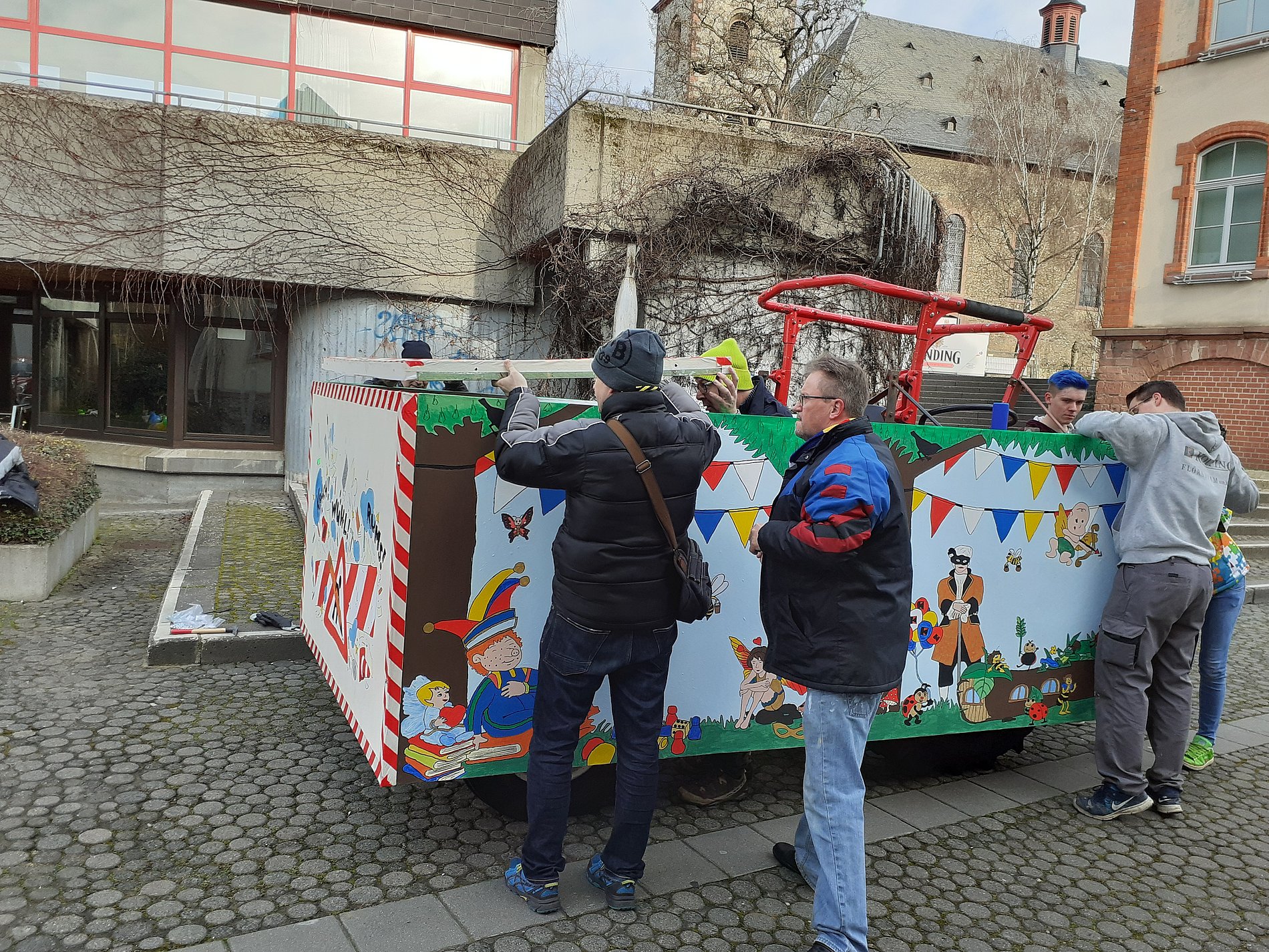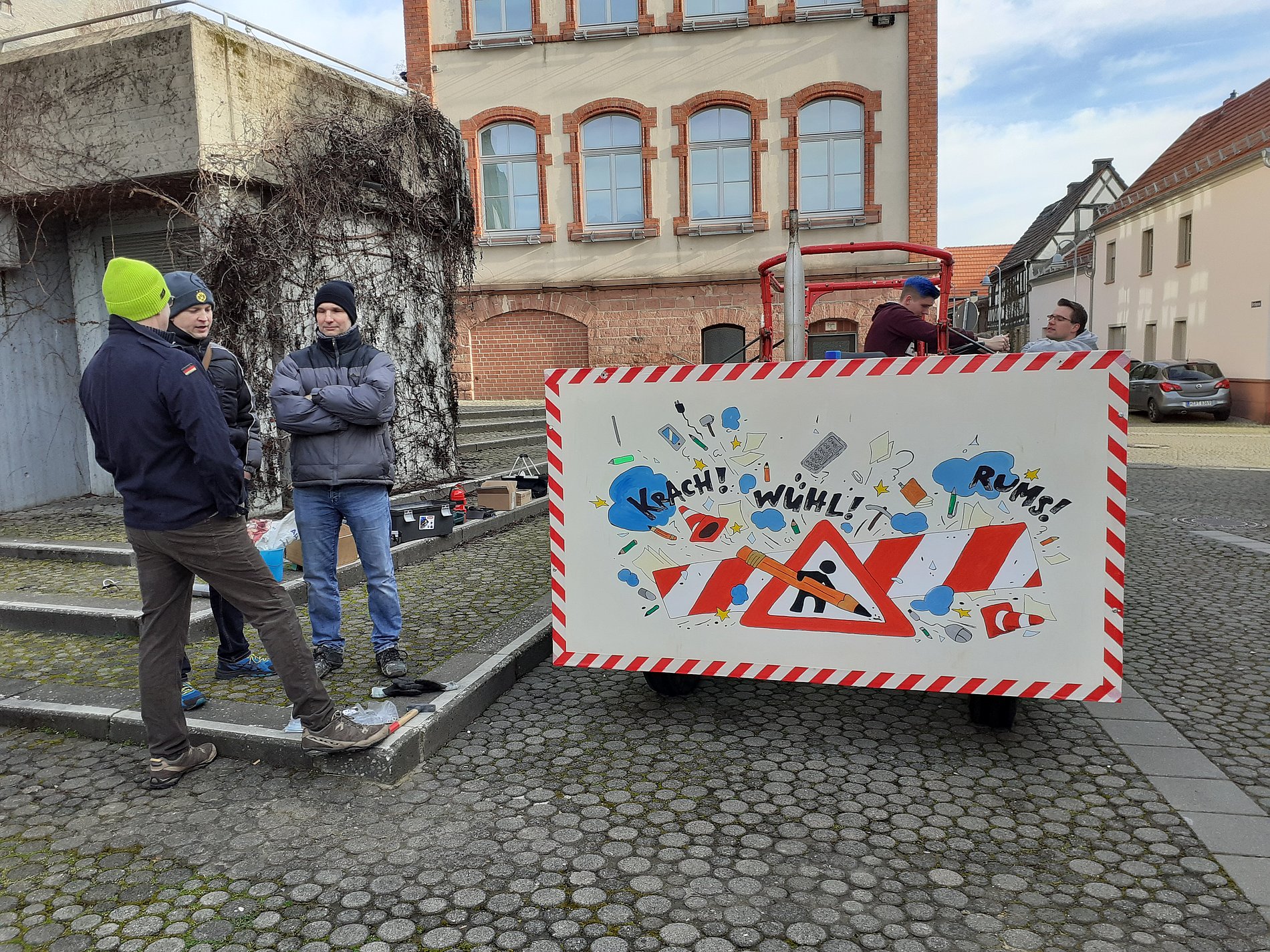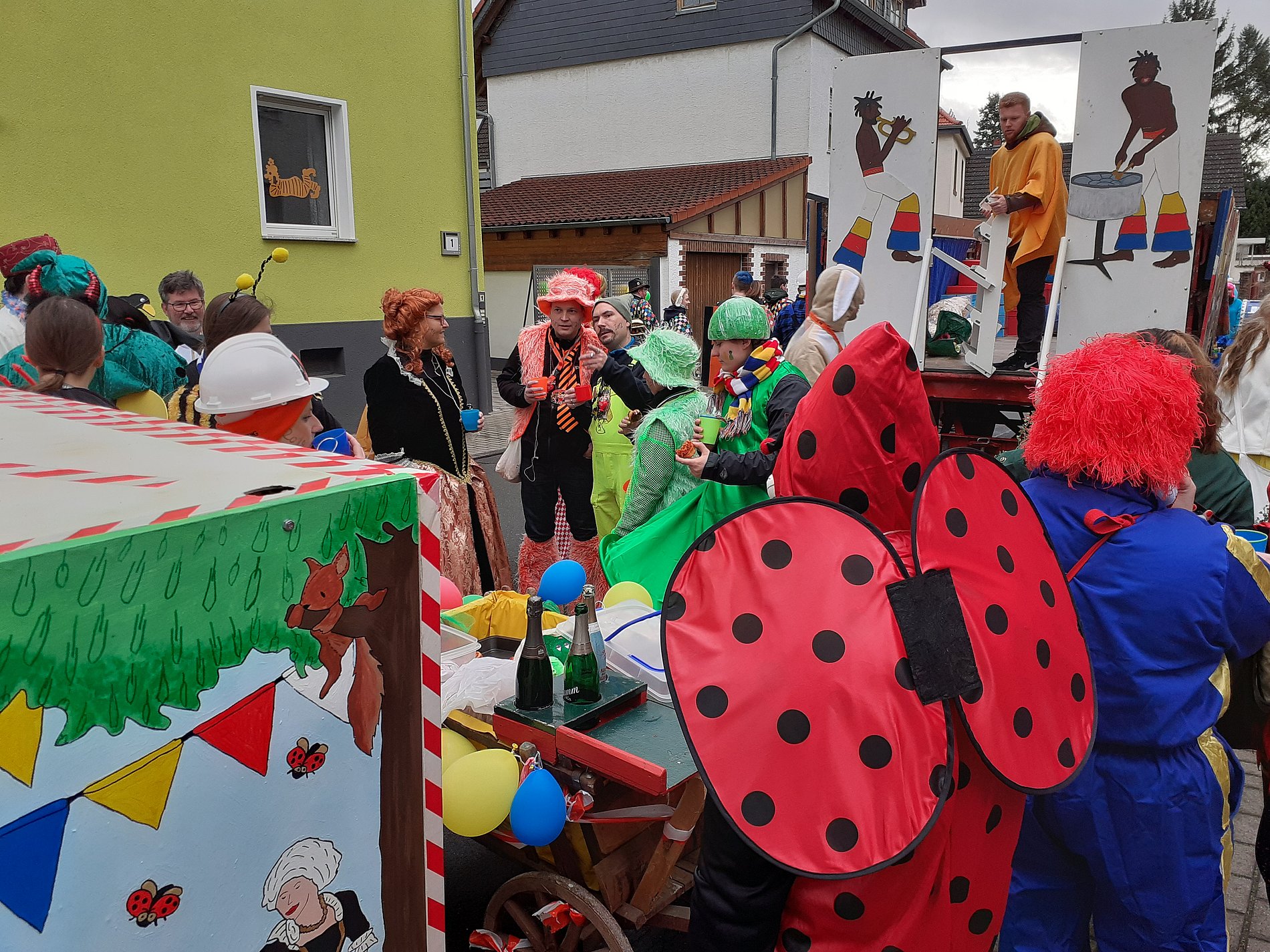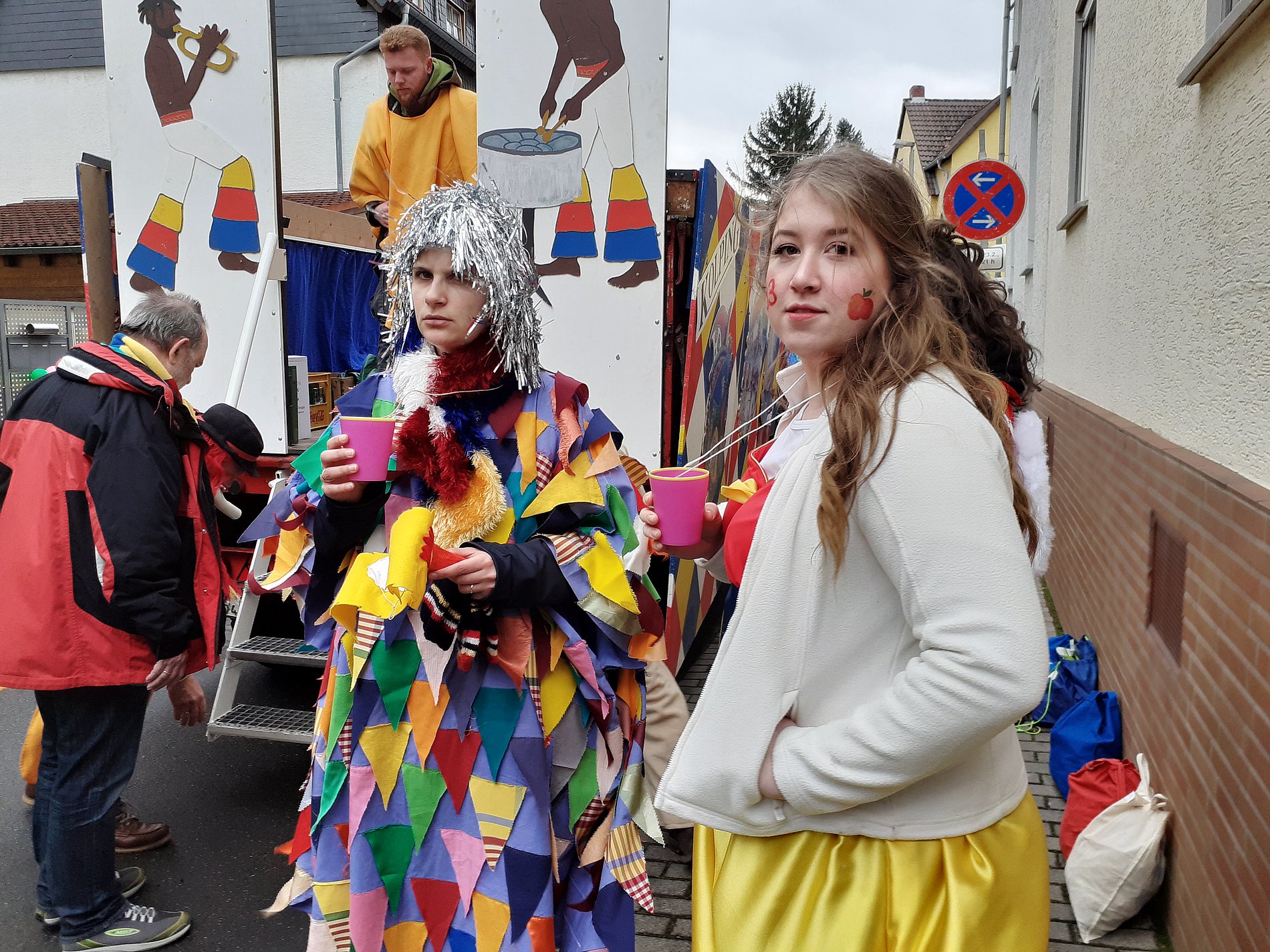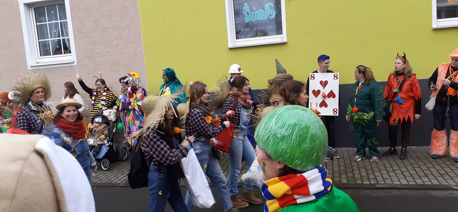 Nach dem am Samstag die Verkleidung des Traktors bei Sonnenschein montiert wurde, hat man heute Morgen beim Aufstehen noch gehofft, dass die letzten Regenwolken sich noch verziehen. Doch es hat sich ein weiteres Mal gezeigt, dass der liebe Gott doch ein Flerschemer sein muss. Rechtzeitig haben sich die letzten Regentropfen verflüchtigt. Mit viel Spaß und bunten Kostümen aus den vergangenen Jahren hat die Kolpingfamilie Flörsheim in diesem Jahr eine farbenprächtige Gruppe abgegeben und viel gute Laune versprüht.