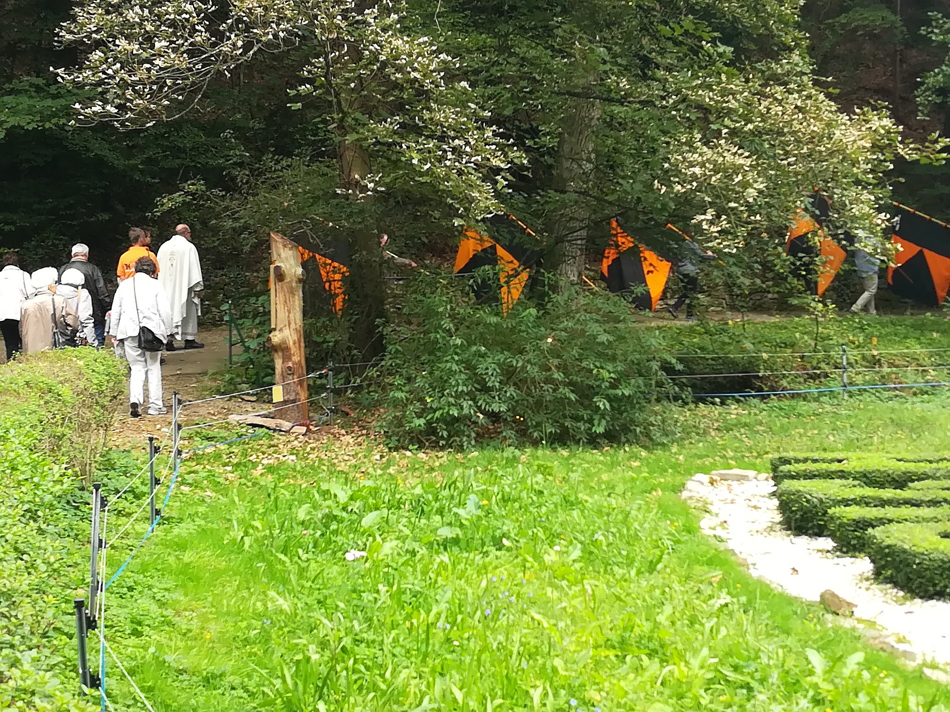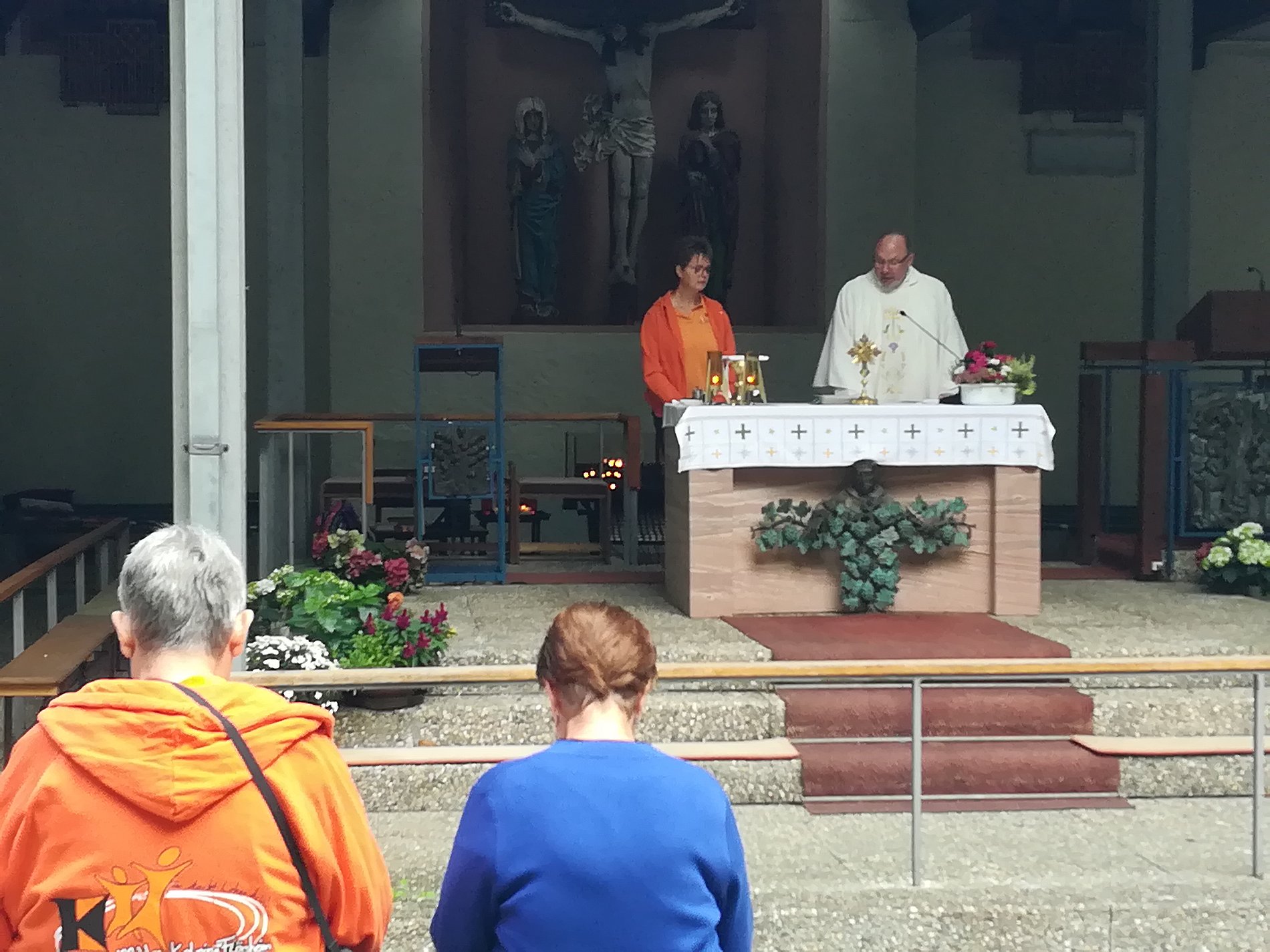 Zurück am Außenaltar wird gemeinsam Eucharistie gefeiert und das Kolpinglied "Wir sind Kolping" zum Abschluss gesungen. Doch damit ist der Tag nicht zu Ende. Die einzelnen Kolpingfamilien treffen sich noch zum gemütlichen Beisammensein.