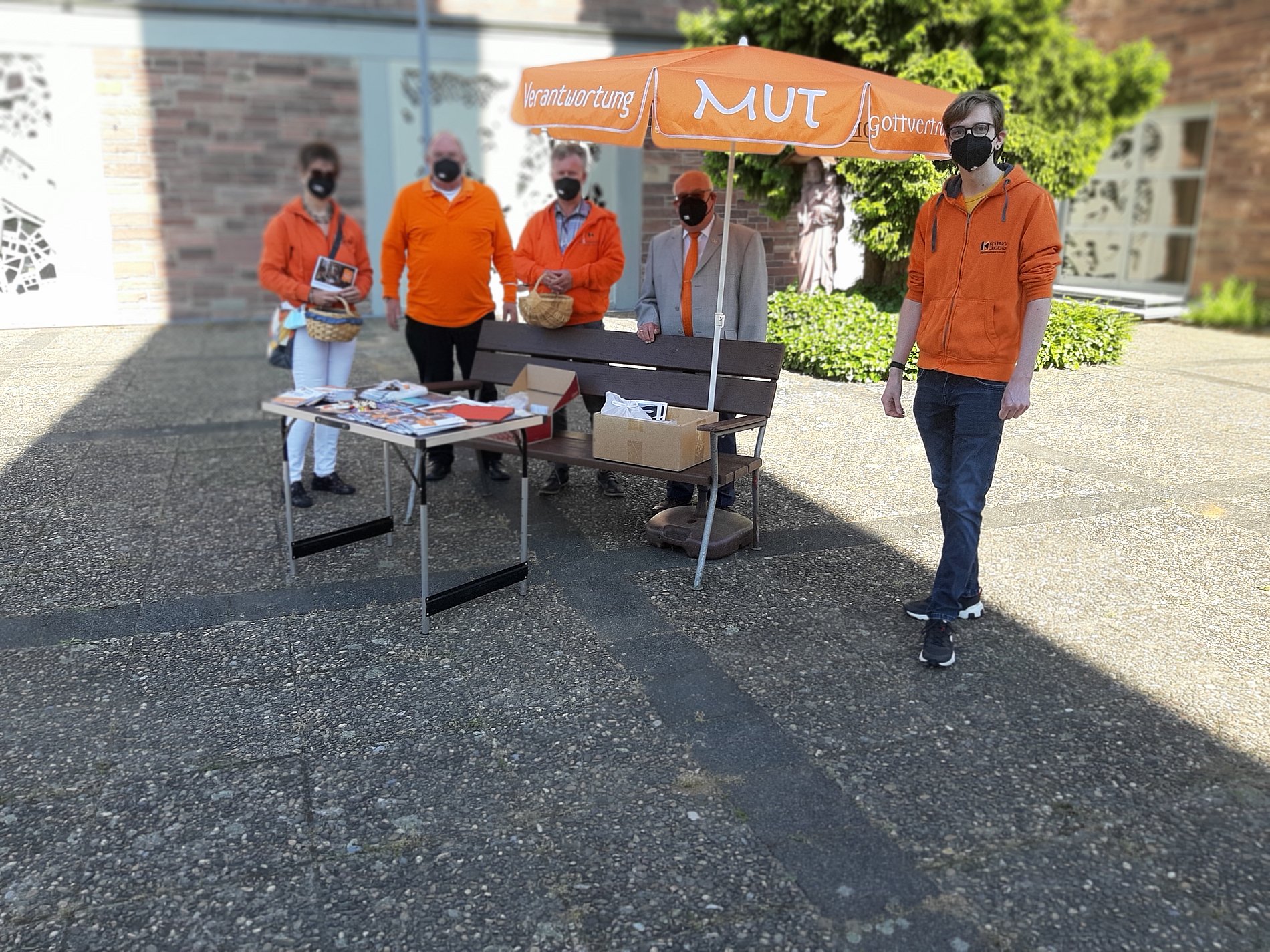 Während Corona scheint das Vereinsleben still zu liegen. Viele Veranstaltungen dürfen nicht stattfinden. Und doch bieten die Kolpingfamilien des Bezirks Main-Taunus vieles an wie gestaltete Gottesdienste und Andachten, Mitgliederaktionen, Rundbriefe und -mails sowie verschiedene Online-Angebote. Am Sonntag, dem 30.05.2021 haben die Kolpingfamilie Flörsheim und Kelkheim die Gelegenheit genutzt ihre Aktivitäten den Gemeindemitgliedern vorzustellen. Es war sehr schön das große Interesse der Gottesdienstbesucher zu erleben und wieder einmal in der Gemeinde präsent zu sein. Bezirkspräses Christian Preis hatte zuvor in beiden Gemeinden den Gottesdienst mit Kolpingmitgliedern und der Gemeinde gefeiert.