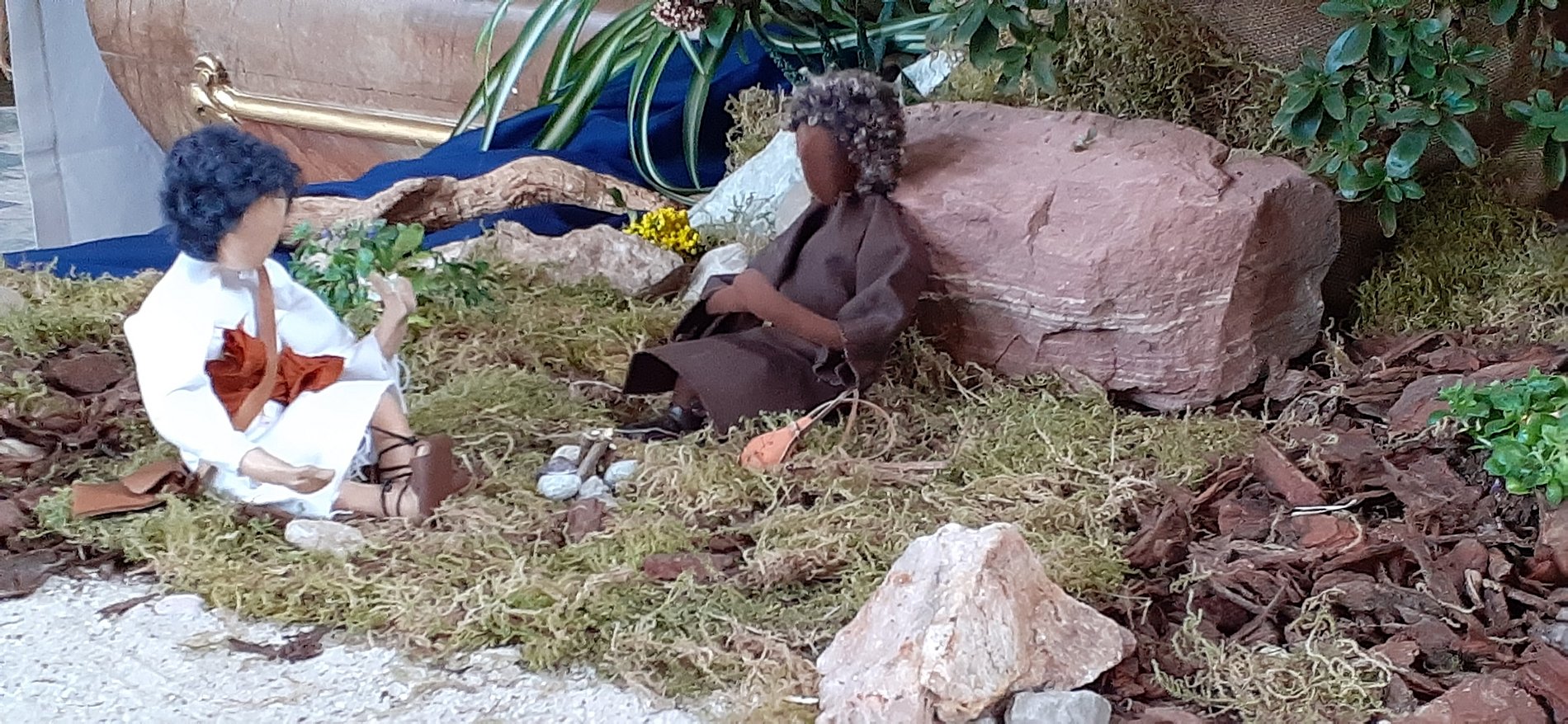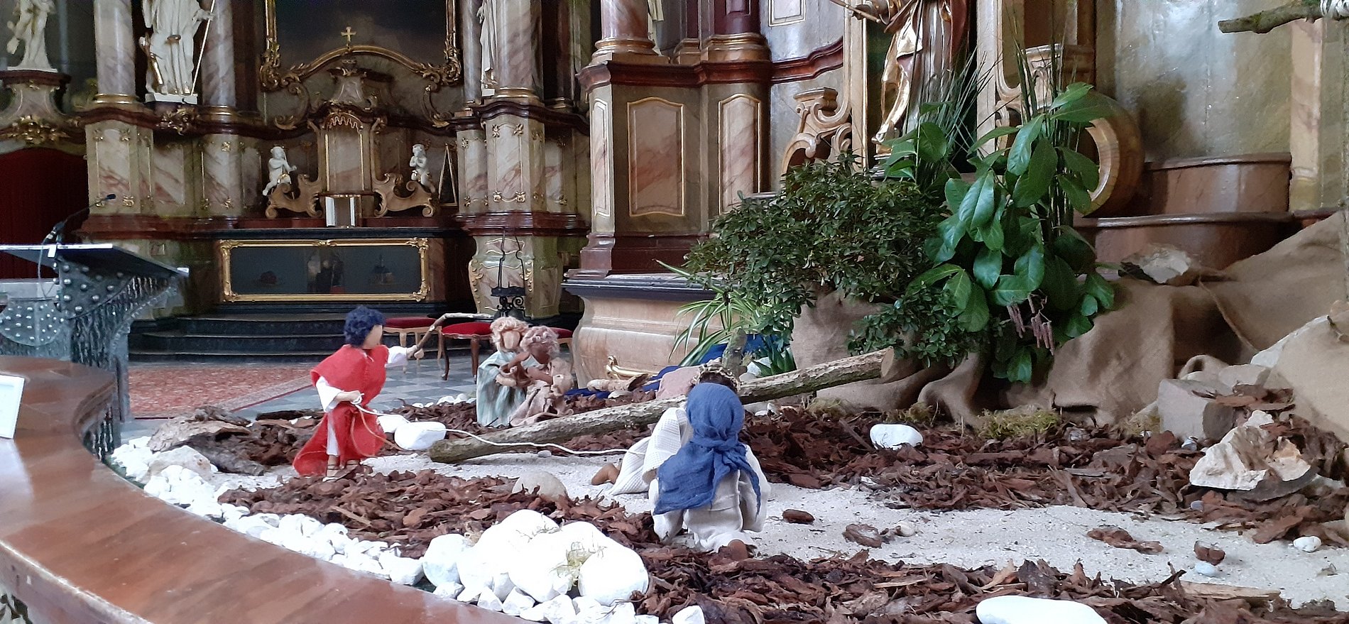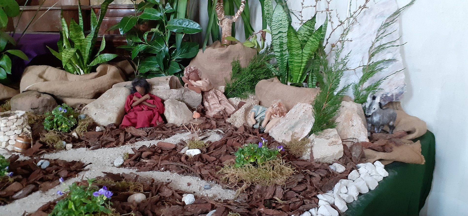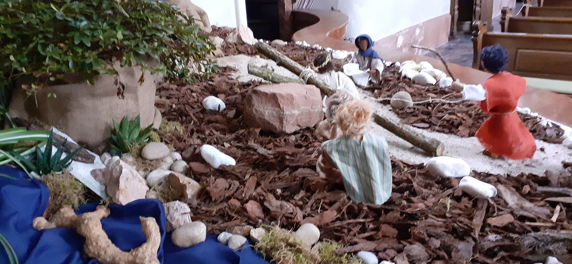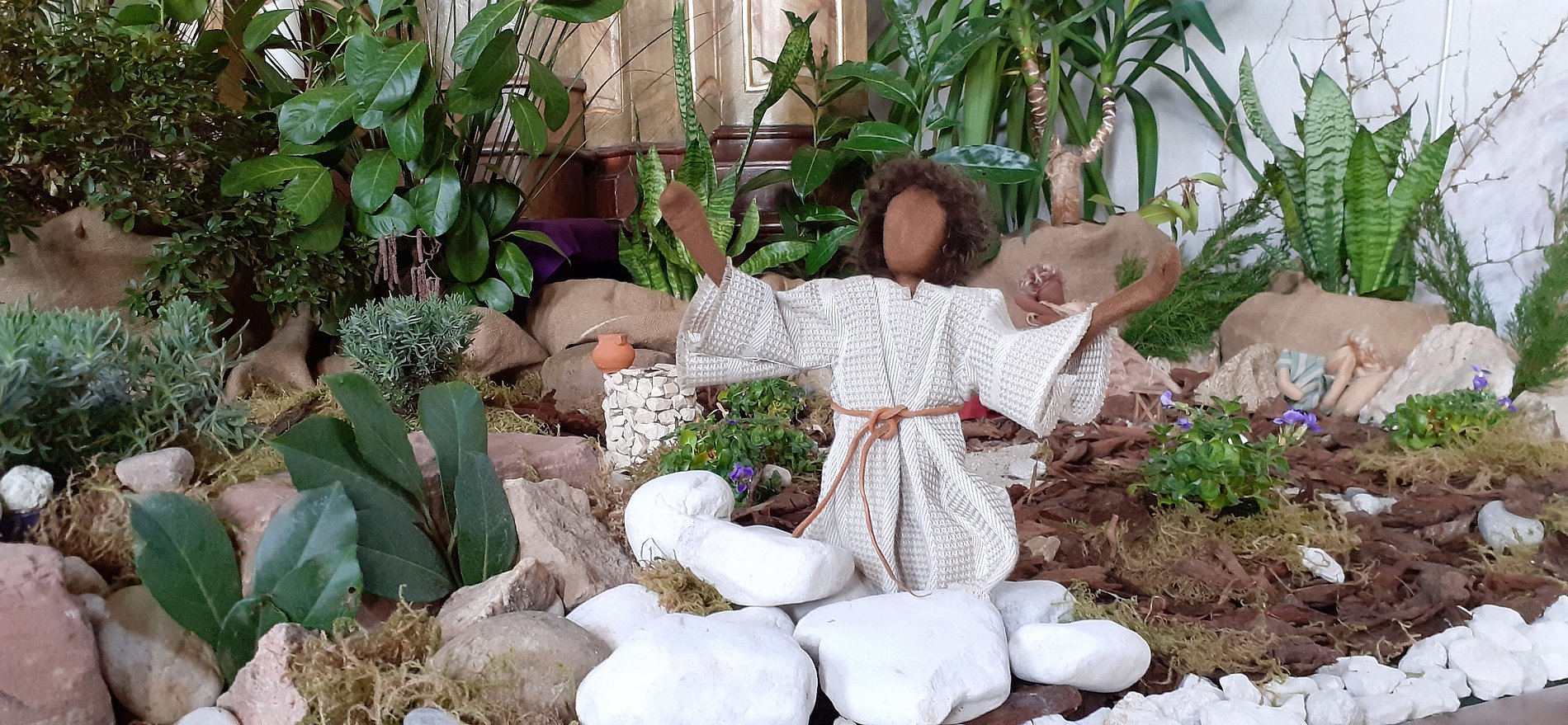 Am Samstag vor Palmsonntag haben sie mit männlicher Unterstützung einen Teil der Fläche für die jährliche Weihnachtskrippe aufgestellt und anschließend gestaltet. Es ist der Einzug Jesu nach Jerusalem dargestellt.