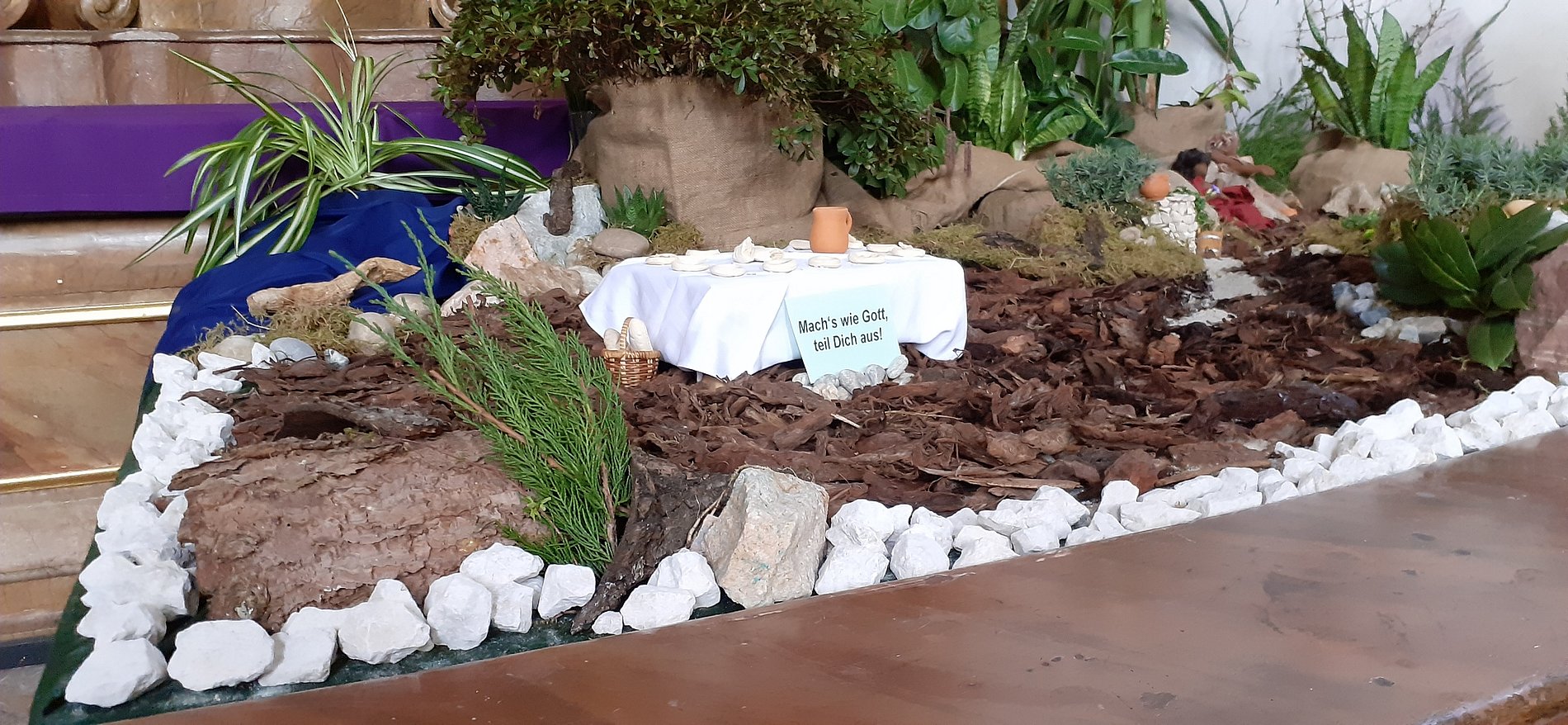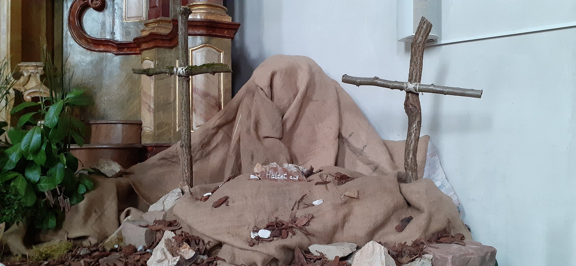 In diesem Jahr haben sich vier Frauen aus unserem Kirchort St. Gallus zusammen gefunden um die letzten Tage aus dem Leben Jesu bildlich in der Kirche darzustellen. Zufällig sind sie auch alle Mitglied in unserer örtlichen Kolpingfamilie. Während der Öffnungszeiten der Kirche sind alle Interessiertn herzlich eingeladen sich die aktuelle Szene anzuschauen und sich berühren zu lassen.