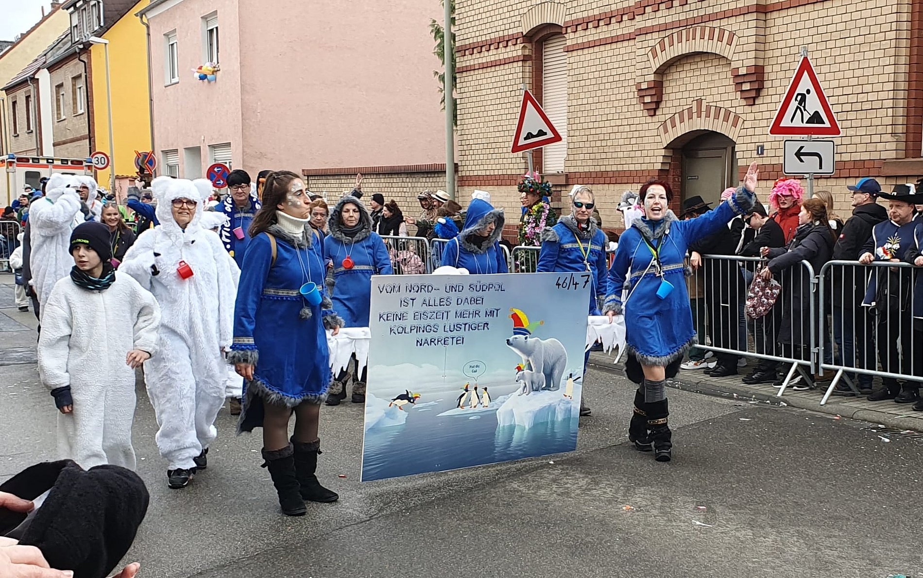 Mit viel Spaß und Freude war die Kolpingfamilie Flörsheim wieder bei der Straßenfastnacht dabei. Bei gut gefüllten Straßen mit bunt kostümierten Narren und Närrinnen war der Weg kurzweilig und abwechslungsreich.