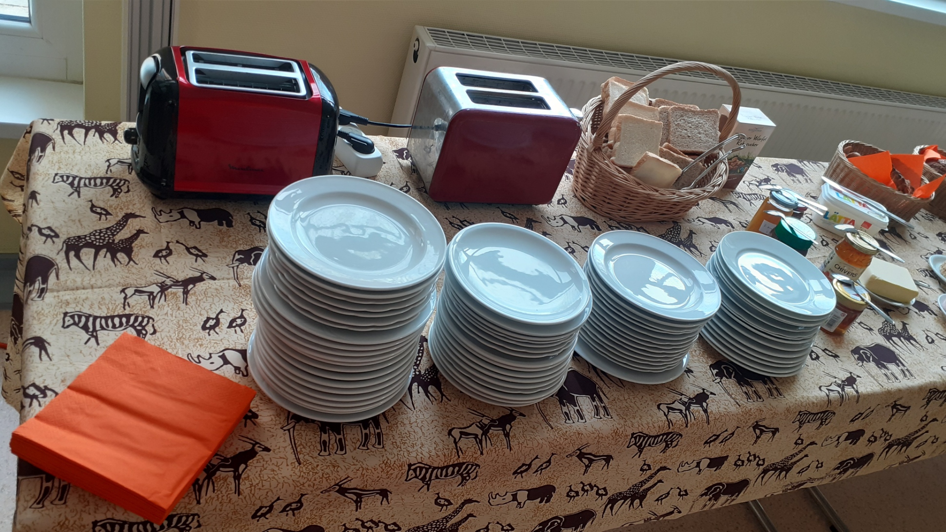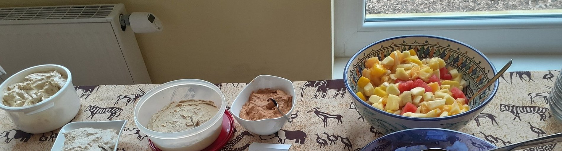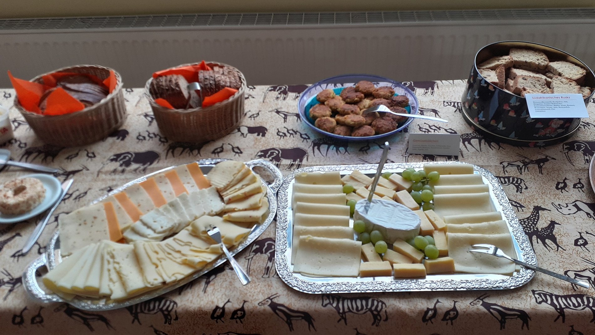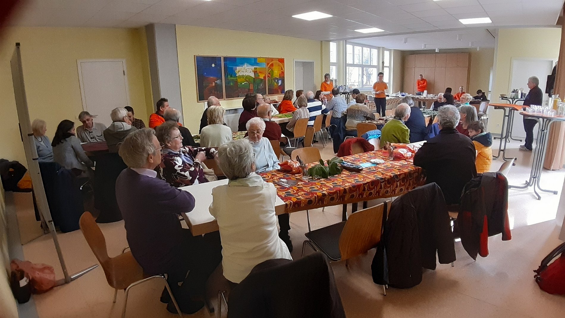 Mit einer großen Vielfalt verwöhnt der Arbeitskreis Partnerschaft Chipulukusu seine Gäste ein weiteres Mal. Das reichhaltige Buffet enthält über verschiedene Hummussorten, Dattelaufstrich, Käse, Marmeladen, Honig, Schokocreme, Käse, Obstsalat, Boeber (eine süße Fastenspeise der Muslime), frischgebackenen Eiern, Kaffee, Tee bis zu Bananen- und Marcuja-Mango-Nektar alles was man zum Frühstück benötigt. Die Resonanz der Gäste war durch die Bank weg positiv. Ein weiterer Schwerpunkt den der Arbeitskreis auf das Frühstück legt, ist der Fairtrade-Gedanke. Seit vielen Jahren arbeitet der Arbeitskreis Eine-Welt des Kirchortes St. Gallus mit uns zusammen. Er verkauft während des Frühstücks faire gehandelte Waren. Außerdem ist die Kolpingfamilie Flörsheim im Rahmen der Fairtraide-Stadt Partner der Stadt Flörsheim. Der Erlös des Frühstücks finanziert weitere Bücher für die St. Charles-Lwanga-Schule sodass wir dem Ziel für jede/n Schüler*in in jedem Schulfach ein eigenes Buch zur Verfügung stellen zu können näher kommen.
