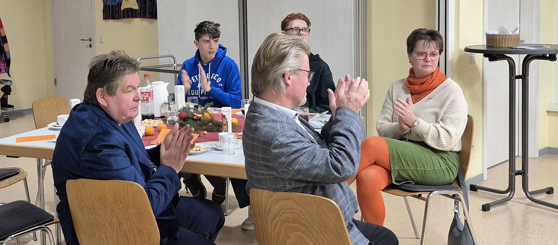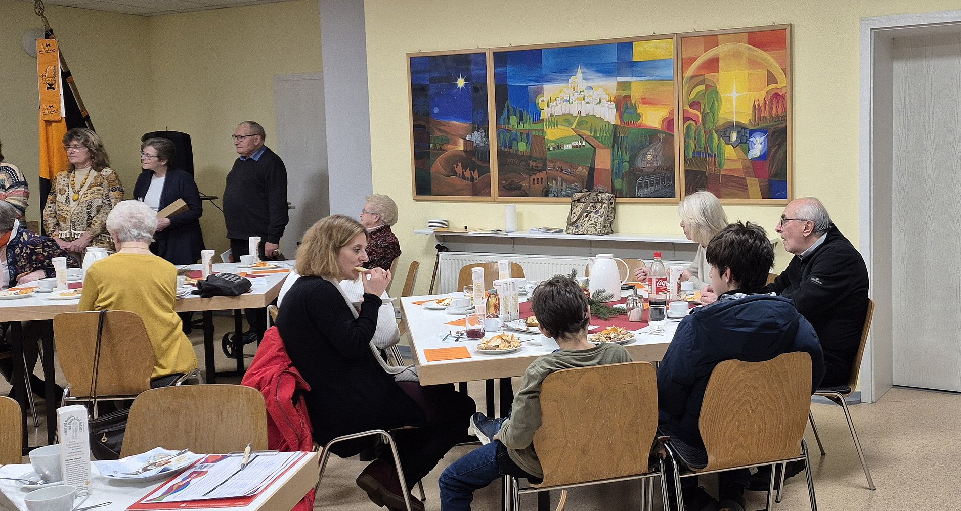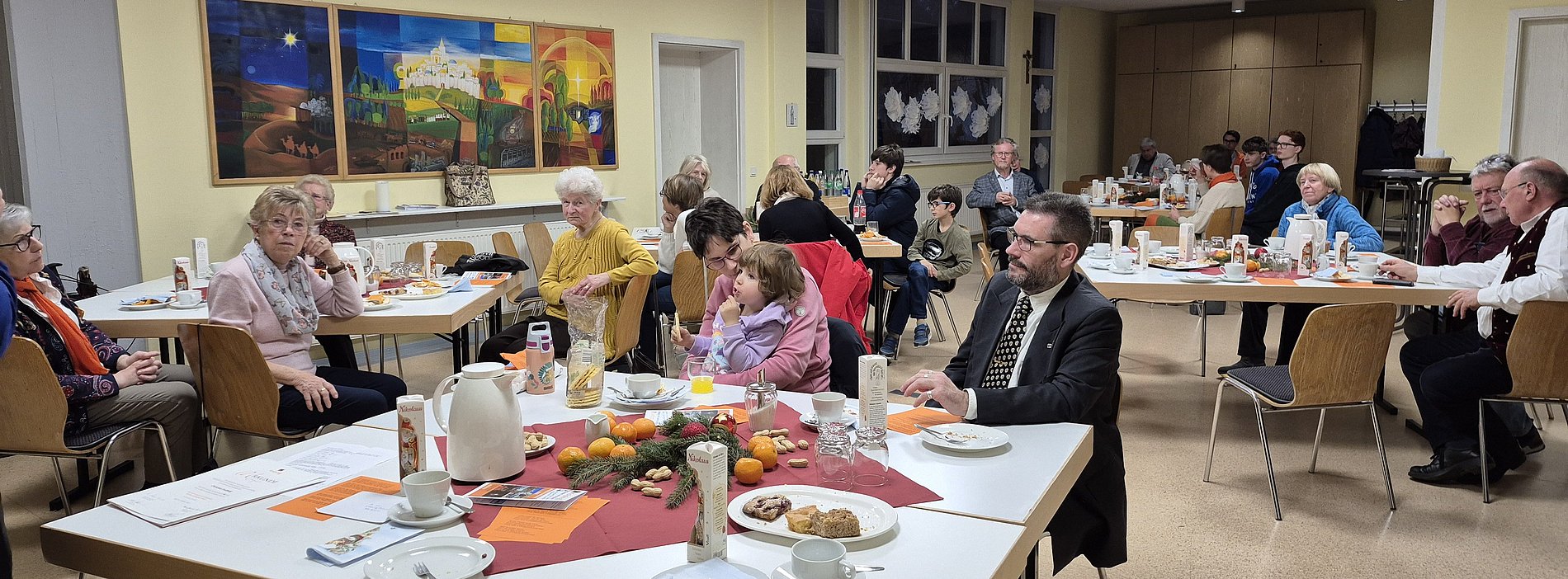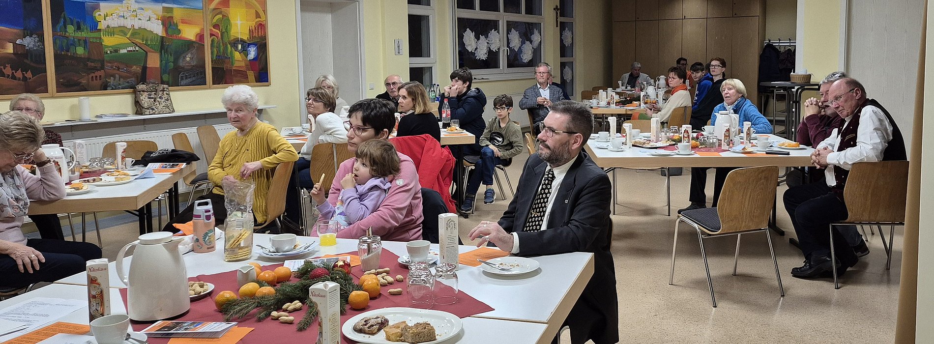 interessanten Diskussionen zwischen den beiden Persönlichkeiten. Im Anschluss trafen wir uns im Pfarrheim St. Josef zum Kaffeetrinken mit selbstgebackenem Kuchen und frisch gemachten Waffeln zum gemütlichen Beisammensein. Dabei wurden unsere Jubilare geehrt und Neumitglieder aufgenommen. In entspannter, adventlicher Atmosphäre bot das Kolpingfest eine schöne Gelegenheit zum zwanglosen Austausch und zu guten Gesprächen. Auch in diesem Jahr gab es wieder eine Schuh- und Brillensammelaktion für einen guten Zweck. Hierzu wurden von einigen Mitgliedern Brillen und Schuhe mitgebracht.